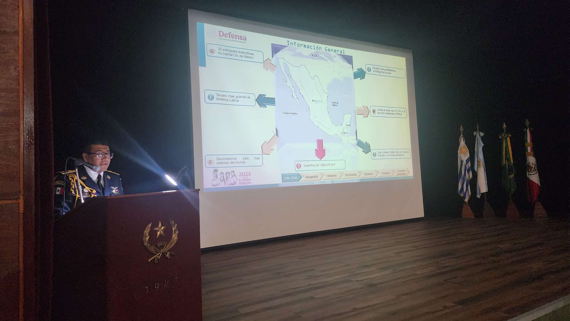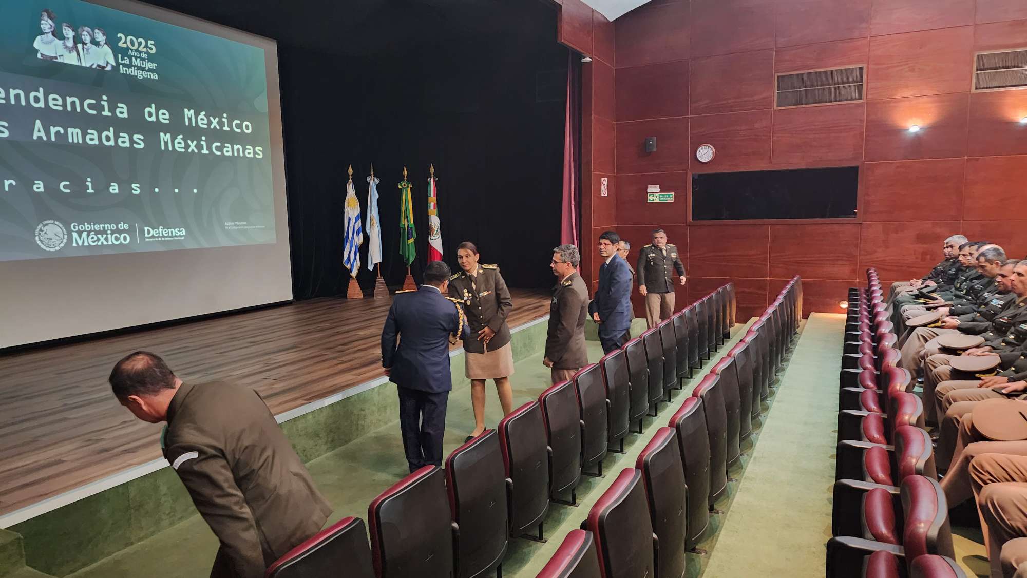 En el día de ayer y con la presencia de la Directora de la Escuela de Comando y Estado Mayor del Ejército, el Señor Jefe de la Cancillería de la Embajada de México en Uruguay, el Señor Agregado Militar y Aéreo en la Embajada de México en Uruguay, Señores Oficiales Superiores, Señores Oficiales Jefes de la República Argentina, la República Federativa del Brasil, y del Ejército Nacional, se llevó a cabo la Ceremonia conmemorativa al duocentésimo décimo quinto aniversario de la Independencia de los Estados Unidos Mexicanos.